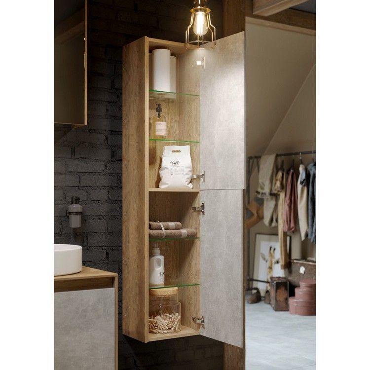 Шкаф-пенал Aqwella Mobi MOB0535BS+MOB0735W подвесной 36.5 смПодвесной пенал 36,5 см с двумя дверьми с системой открывания «push-to-open». Цвет бетон светлый/белый