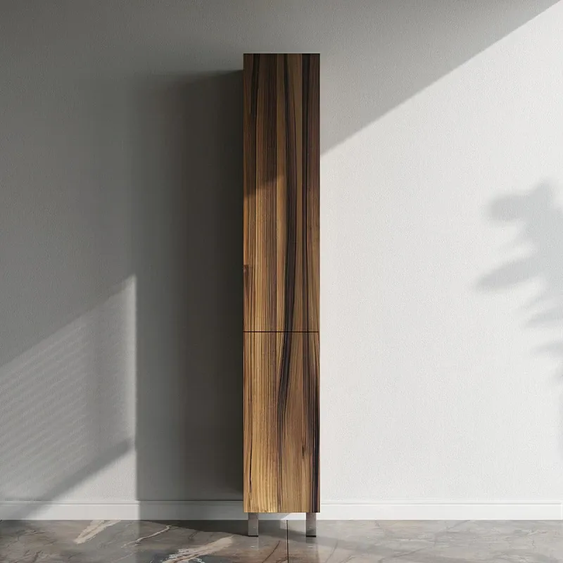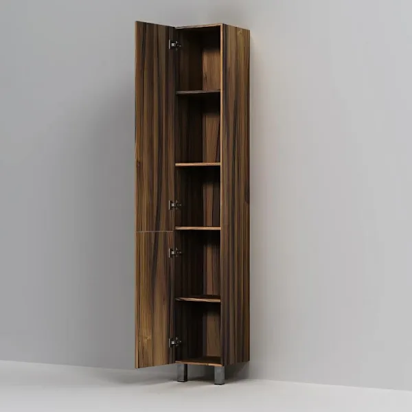пять полочек в шкафу-пенале оптимизируют пространство для хранения ванных принадлежностей и моющих средств.
