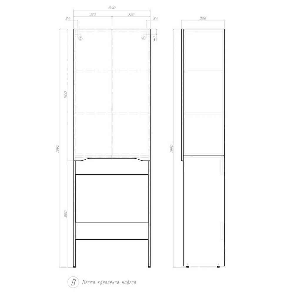 Шкаф под стиральную машину VIGO Grani белый, 64 см. Высота: 199 см. Ширина: 64 см. Глубина: 35,9 см. Монтаж: напольный. Материал фасада: МДФ. Материал корпуса: ЛДСП.