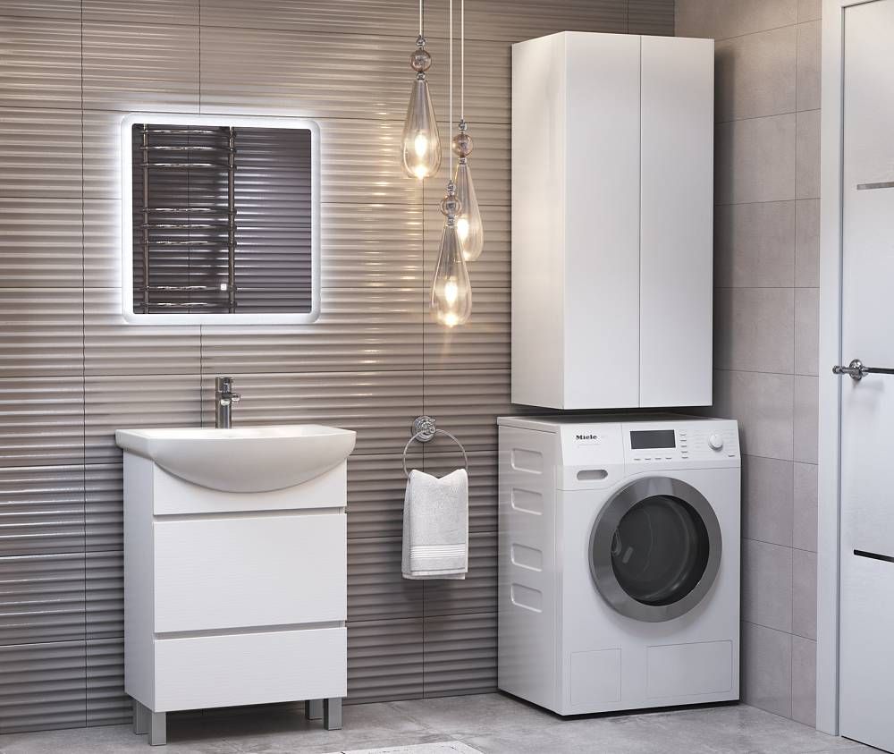 Шкафы Wing – идеальное решение, позволяющее сэкономить пространство ванной комнаты за счет размещения над стиральной машиной
