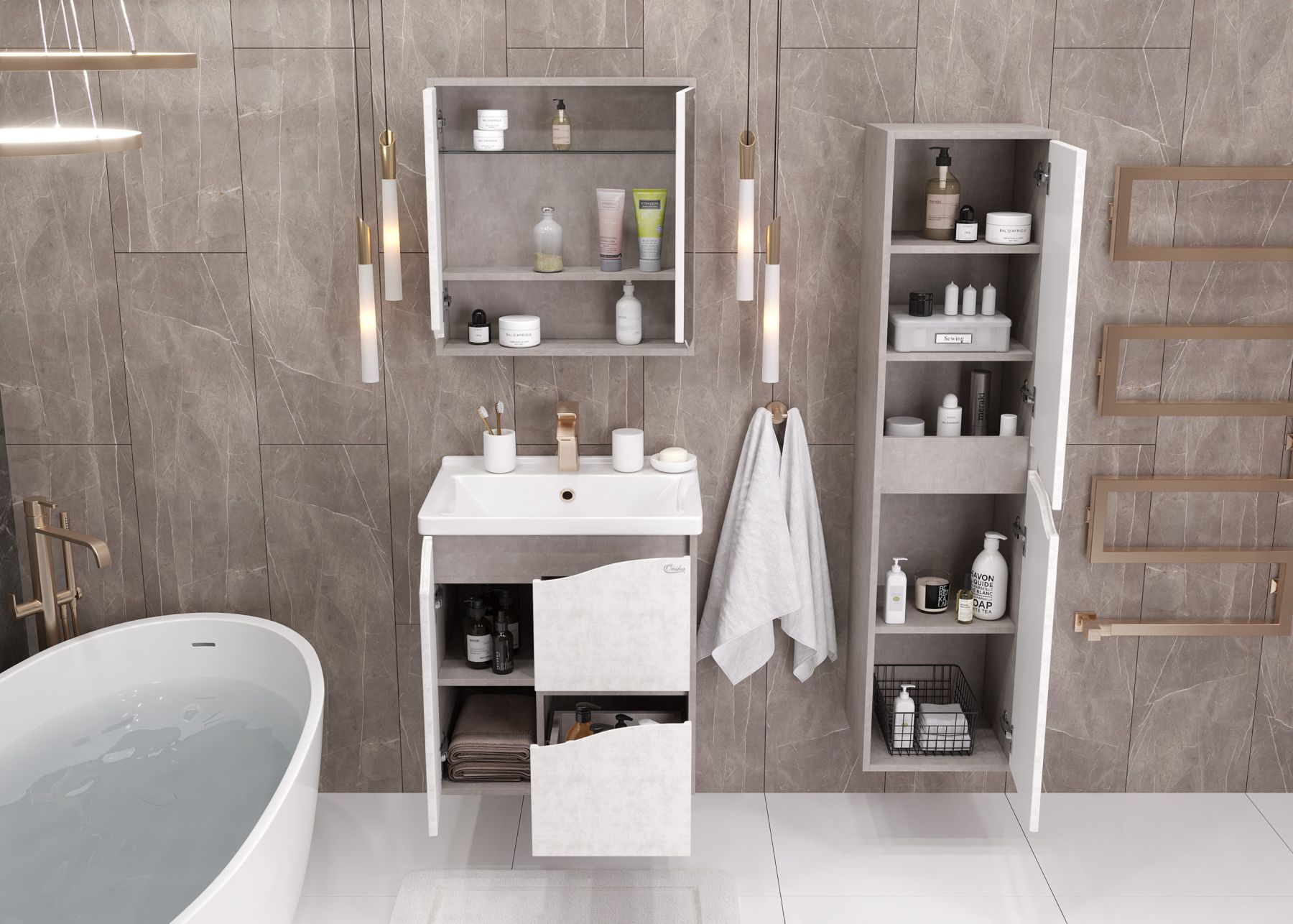 Зеркальный шкаф Onika БРЕНДОН 60 поможет создать особенную атмосферу ванной комнаты: текстуры камня и бетона гармонично дополняют друг-друга, создавая сдержанный выразительный акцент в интерьере.