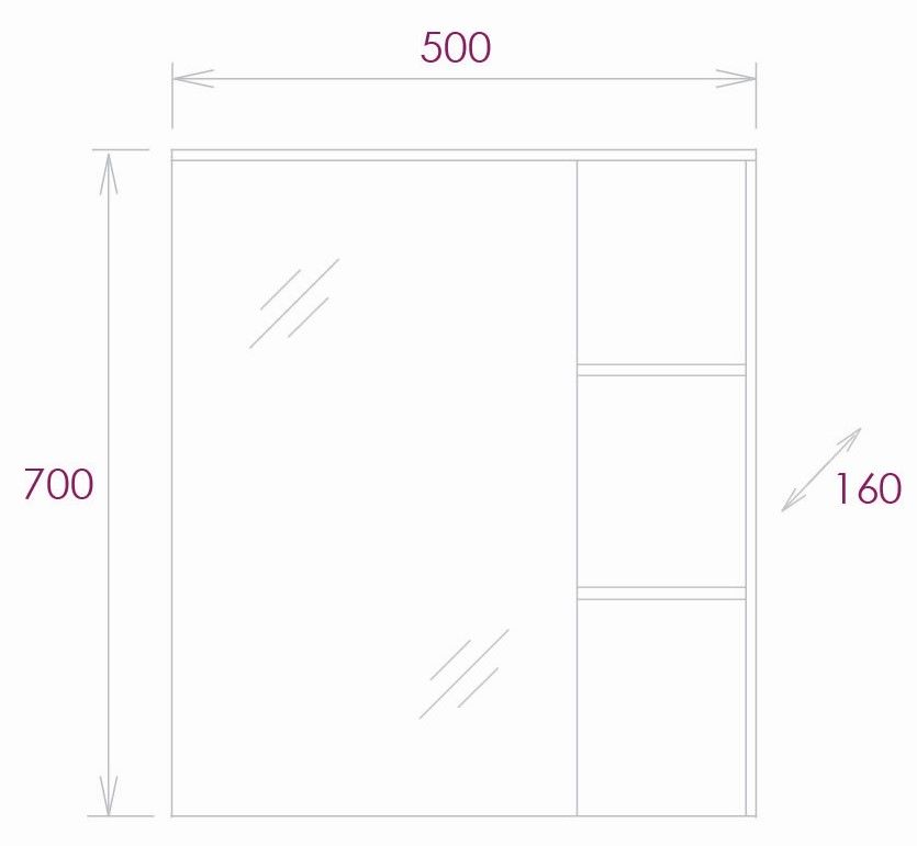Шкаф-зеркало выполнен из ЛДСП, устойчивой к механическим воздействиям, перепадам температур и высокой влажности.
