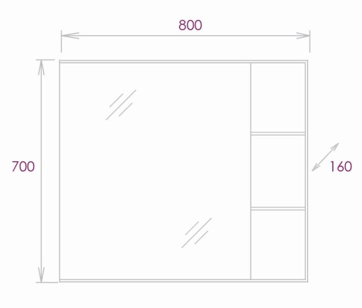 Шкаф-зеркало выполнен из ЛДСП, устойчивой к механическим воздействиям, перепадам температур и высокой влажности.