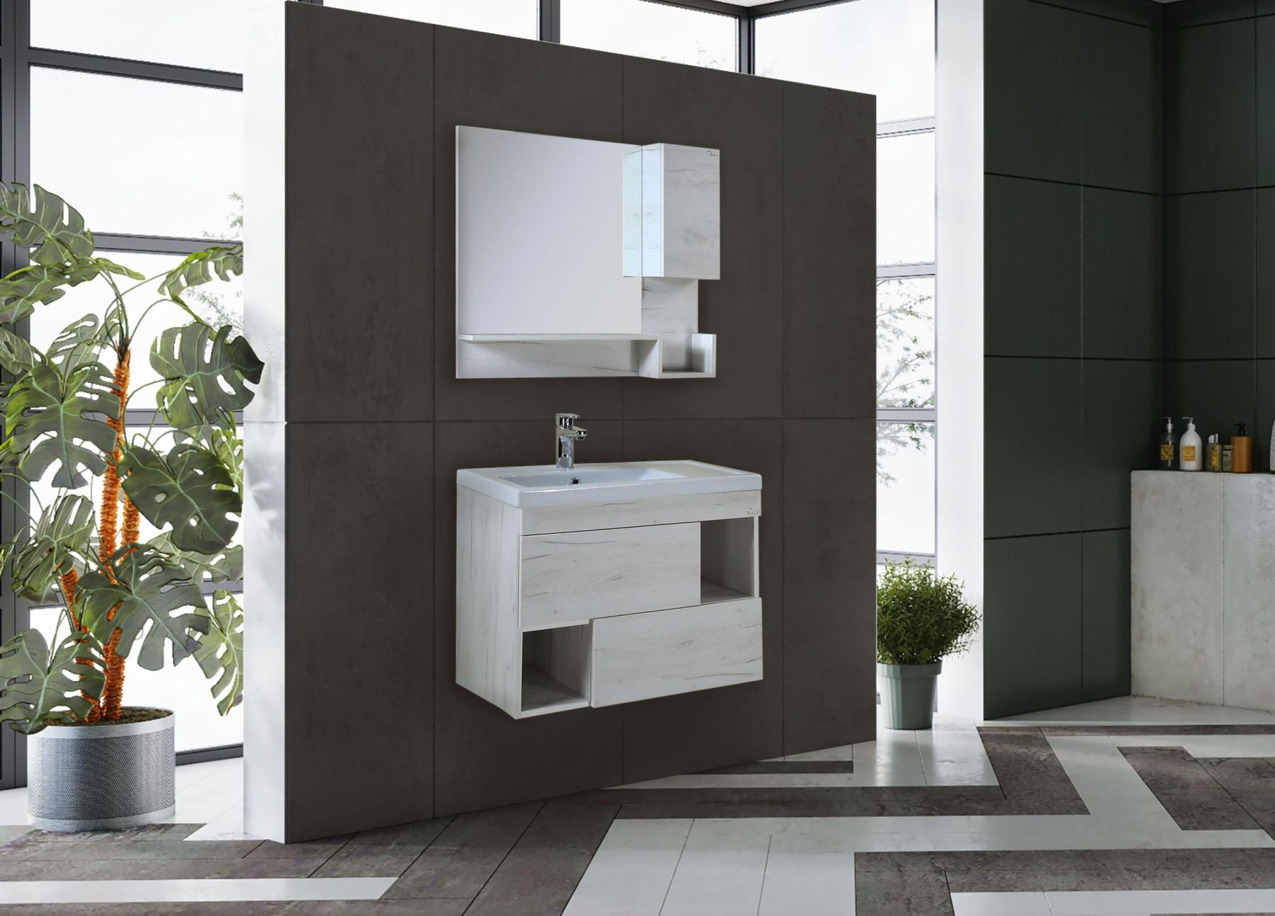 Шкаф-зеркало Onika САНТОРИНИ 80 отражает актуальные тенденции в дизайне мебели для ванной комнаты: минимализм и геометрия фасадов, чёткость и лаконичность форм, отсутствие декора и нежный цвет белого дерева с текстурой дорогих пород.