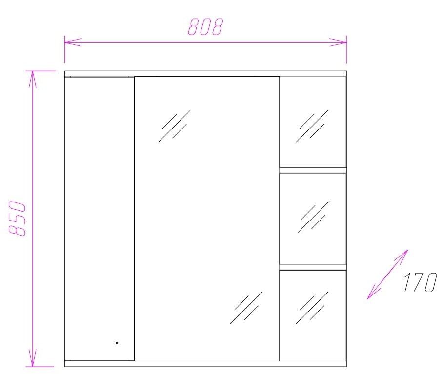 Шкаф-зеркало с подсветкой Onika Эльбрус 208022 правый 80см белый купить