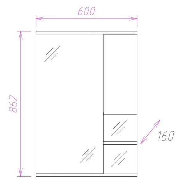 Корпус шкафа-зеркала выполнен из ЛДСП, фасад - из ЛМДФ в пленке, устойчивых к механическим воздействиям, перепадам температур и высокой влажности.