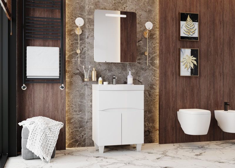 Шкаф-зеркало с подсветкой Onika Неаполь 206064 60см белый купить
