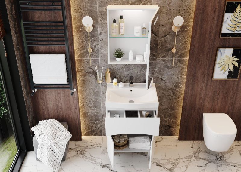 Зеркальный шкаф Onika НЕАПОЛЬ 60 - это безграничный полет фантазии, подкрепленный грамотным сочетанием модных тенденций и новинок в мире мебели для ванной комнаты. Индивидуальность шкафа отражается в строгости линий, исключительном минимализме и акценте на свете.