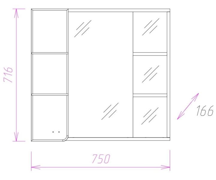 Корпус шкафа-зеркала выполнен из ЛДСП, фасад - из ЛДСП и ЛМДФ в пленке, устойчивых к механическим воздействиям, перепадам температур и высокой влажности.