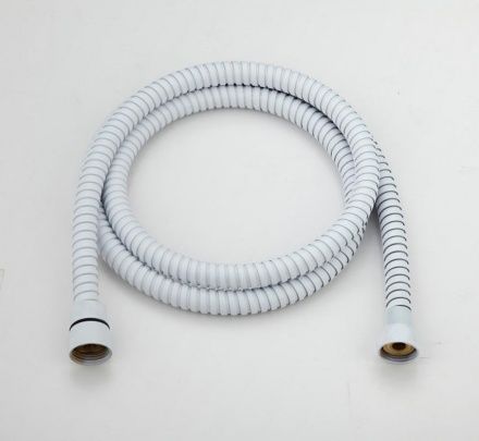 Душевой шланг Orange 1500 мм., двойная металлическая оплетка (нержавеющая сталь), с защитой от перекручивания. Цвет глянцевый белый.