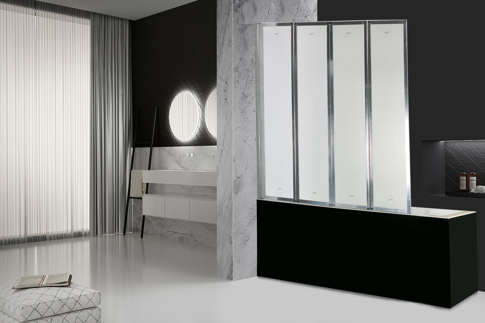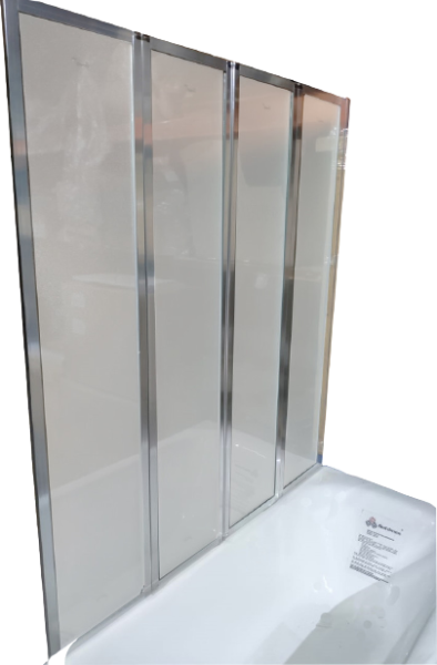 Шторка для ванной Ceruttispa BounaРазмер: 131x139 ммМодель из прозрачного закаленного стекла (4 мм). Полотно устойчиво к случайным ударам. В случае битья, стекло рассыпается на множество граней с тупыми концами, о которые невозможно пораниться.Складная шторка из 4-х частей удобно складывается над ванной. Вода, стекая со стекла, попадает в ванну, оставляя пол сухим.Алюминиевый полированный профиль в цвете хром устойчив к образованию коррозии, не деформируется при перепадах температуры и высокой влажности.Модель крепится к стене.Шторка – универсальная, подходит для установки на правую и левую сторону.Достоинства стеклянной шторки для ванны:Защищает ванную комнату от брызг воды. Пол возле ванны остается сухим, что снижает шансы поскользнуться после водных процедур.Стильный дизайн дополнит оформление ванной комнаты.Шторки из стекла практичны, долговечны и гигиеничны. По сравнению с тканными аналогами, на стеклянных моделях не скапливаются бактерии и грязь, полотно легче чистить.