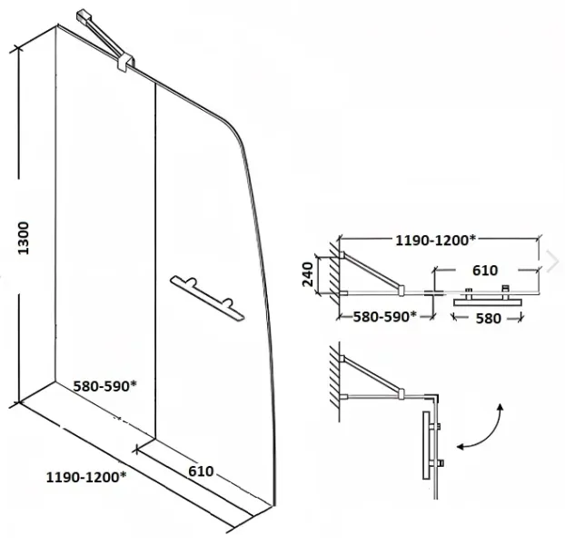 Штора изготовлена из безопасного закалённого стекла, толщиной 5 мм. Оно обработано против известкового налета, поэтому гигиенично и требует минимум усилий для его очистки, в отличие от занавесок для душа. Штора для ванны станет барьером между ванной и полом и предотвратит разбрызгивание воды.