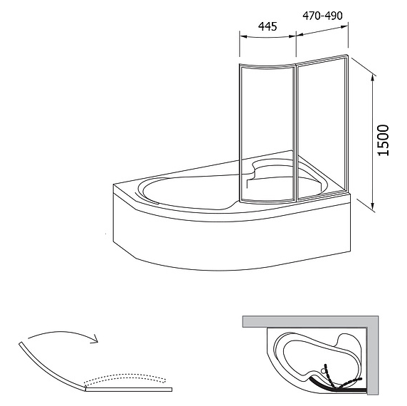 Для установки шторки понадобится лишь нескольких шурупов. Ее можно монтировать в готовую ванную комнату. Материал полотна двери:полистирол