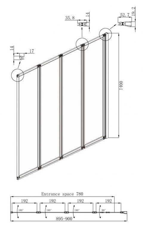- Душевая шторка со складывающимися вовнутрь дверями
