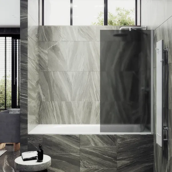 Монтаж осуществляется с помощью алюминиевого профиля, что обеспечивает надежность крепления и безопасность использования стеклянной перегородки для ванной. Также, шторка оснащена специальным уплотнителем, который предотвращает попадание воды на пол ванной комнаты. Закаленное стекло, цвет Графит матовый, толщина 8 мм 1400х300 мм - 1 шт.