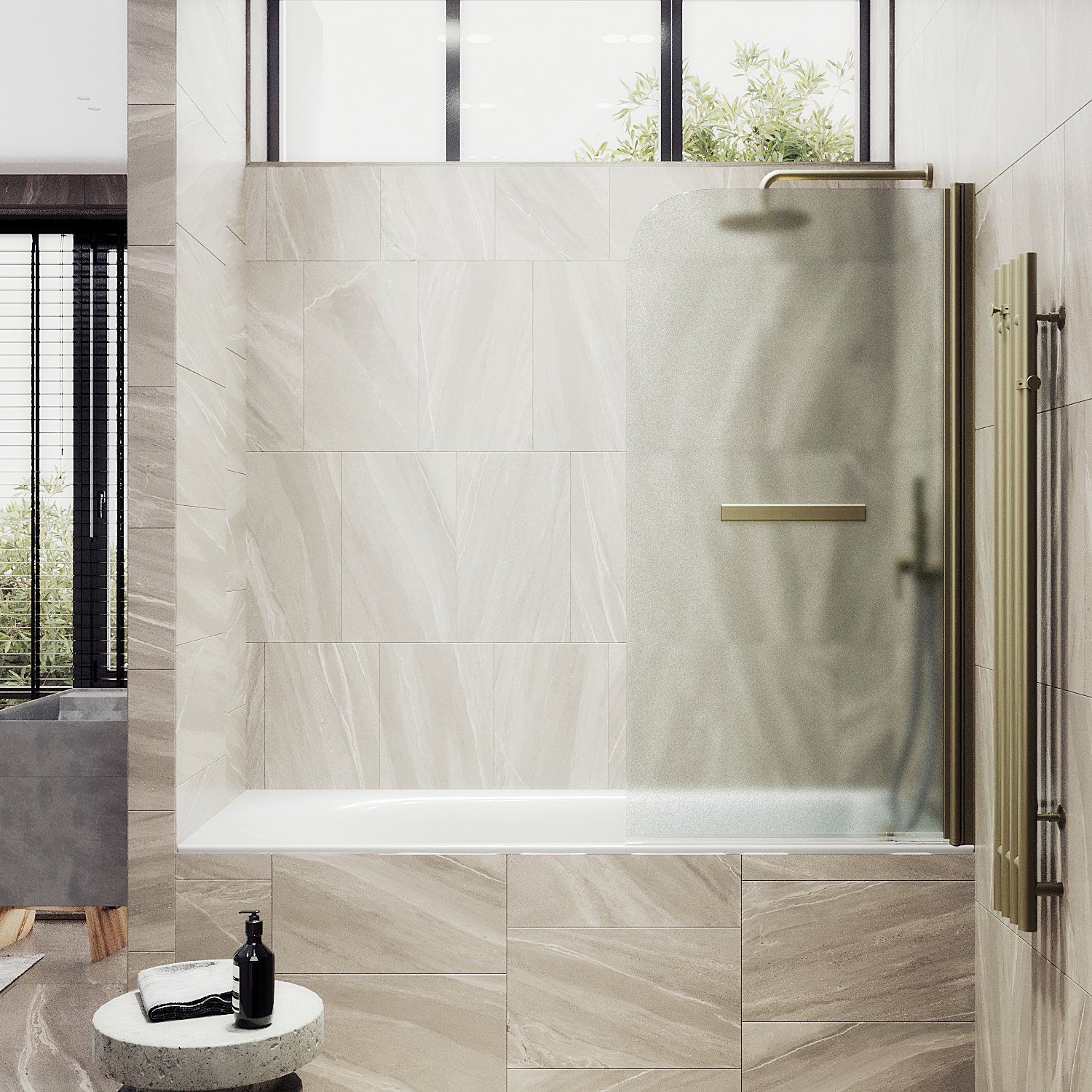 Стеклянные шторки для ванны на монопетле – это стильное и функциональное дополнение для Вашей ванной комнаты. Они изготовлены из закаленного стекла, что делает их прочными и долговечными. Монопетля обеспечивает удобное открывание и закрывание шторки, а также надежную фиксацию ее на ванне. Такие шторки легко моются и не боятся воздействия воды, что делает их идеальным выбором для ванной комнаты. Полотенцесушитель, интегрированный в стеклянную шторку, позволяет быстро высушить полотенца и другие текстильные изделия. Закаленное стекло, цвет сатин, толщина 6 мм 1400х440 мм - 1 шт.