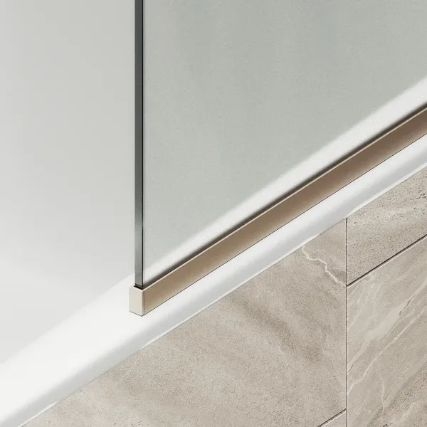 Монтаж осуществляется с помощью алюминиевого профиля, что обеспечивает надежность крепления и безопасность использования стеклянной перегородки для ванной. Также, шторка оснащена специальным уплотнителем, который предотвращает попадание воды на пол ванной комнаты. Закаленное стекло, цвет Сатин, толщина 8 мм 1400х500 мм - 1 шт.