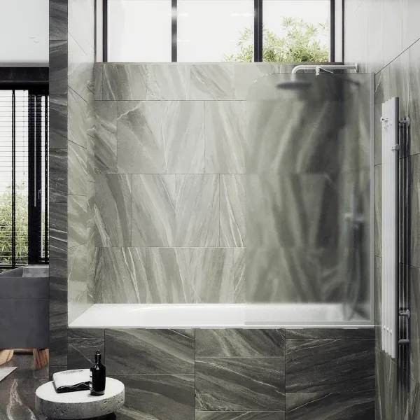 Монтаж осуществляется с помощью алюминиевого профиля, что обеспечивает надежность крепления и безопасность использования стеклянной перегородки для ванной. Также, шторка оснащена специальным уплотнителем, который предотвращает попадание воды на пол ванной комнаты. Закаленное стекло, цвет Сатин, толщина 8 мм 1400х900 мм - 1 шт.