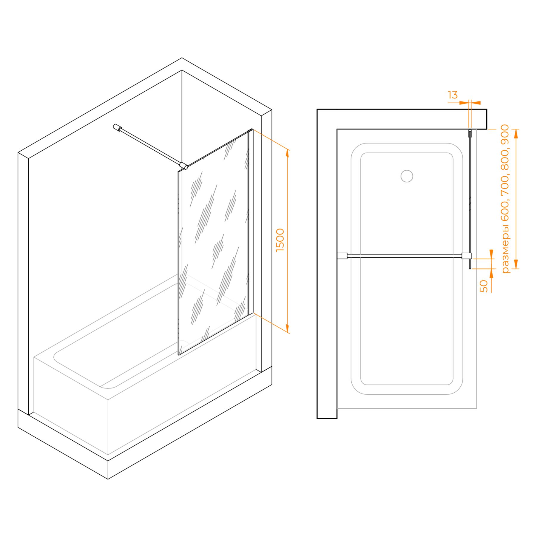 Шторка на ванну RGW SC-051B 351105109-14 90см чёрный купить