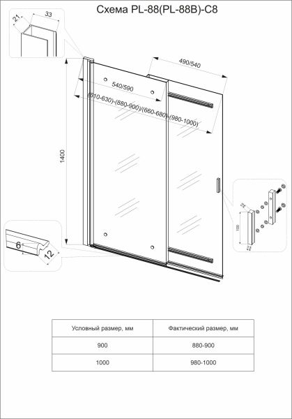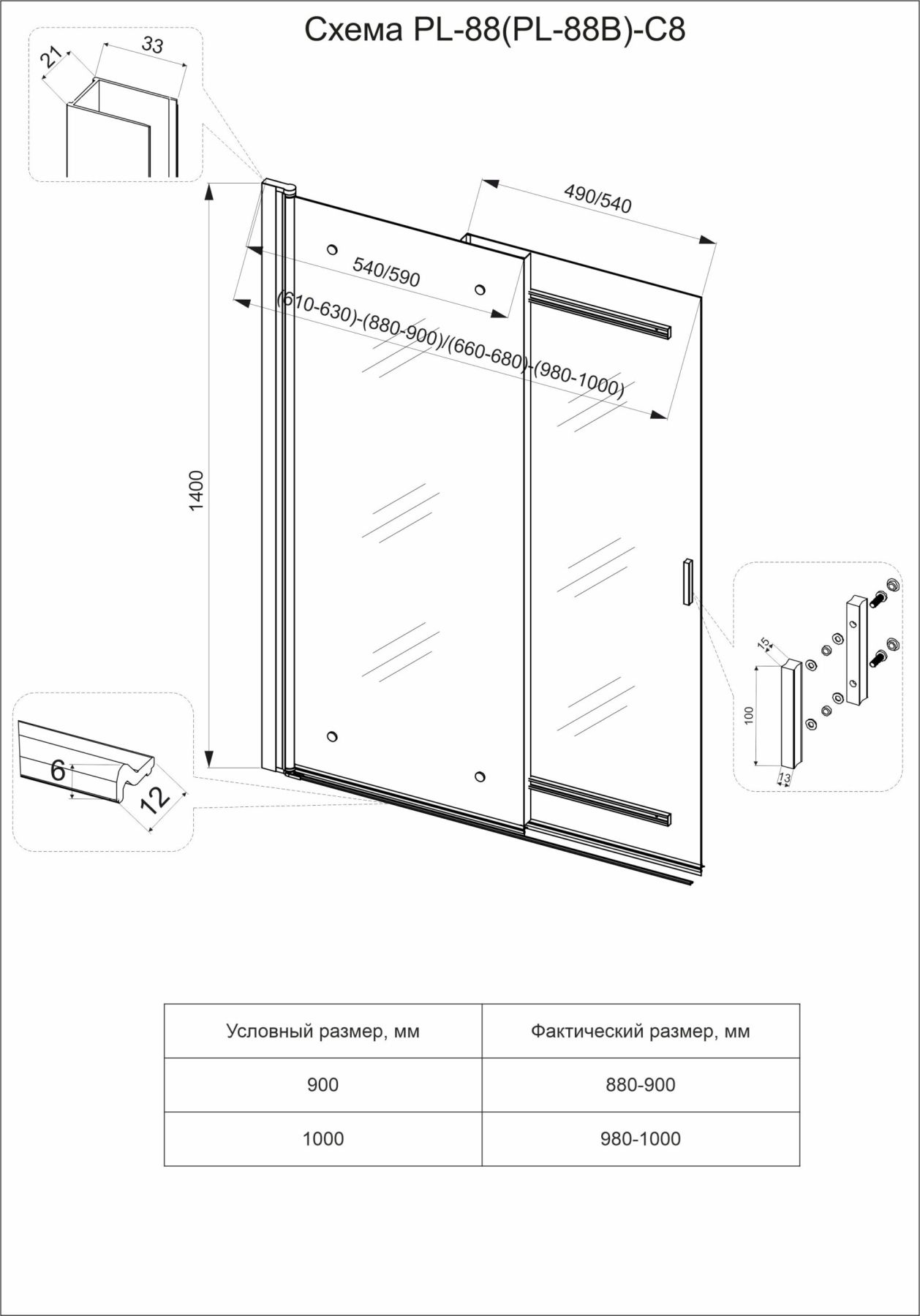 Шторка на ванну Veconi Palau PL-88CH, 900x1400, хром, стекло прозрачное купить