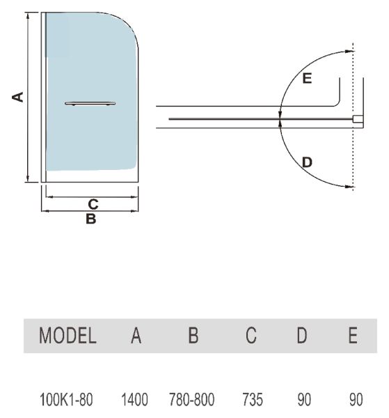 Шторка на ванну WeltWasser "СЕРИЯ WW100 Арт. 100K1-80 купить