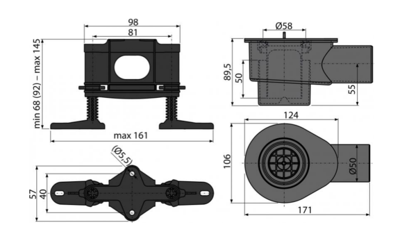 Сифон AlcaPlast DN50 и комплект регулируемых ног для модулярного желоба APZ13 высокий 58 л/мин APZ-S12 купить