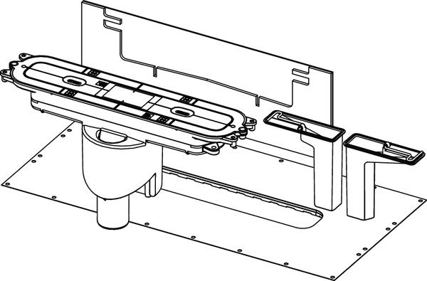 Сифон для душевого профиля TECEdrainprofile для установки в бетоннои стяжке. Для вертикального подсоединения дренажнои линии DN 50. Установленная на заводе гидроизоляционная манжета с защелкои с Seal System для подсоединения композитнои гидроизоляции в соответствии с DIN 18534.