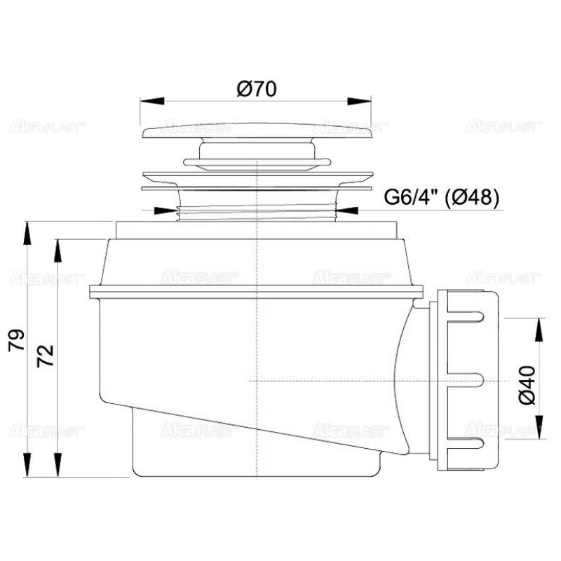 - Для душевых поддонов со сливным отверстием Ø60 мм