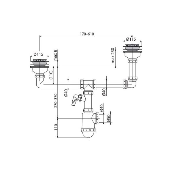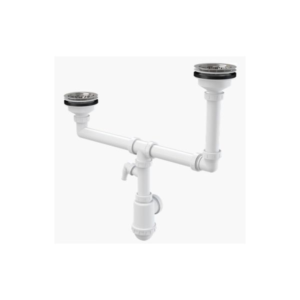 Сифон для двойной разноуровневой мойки AlcaPlast с нержавеющими решетками ?115 и подводкой A454P купить