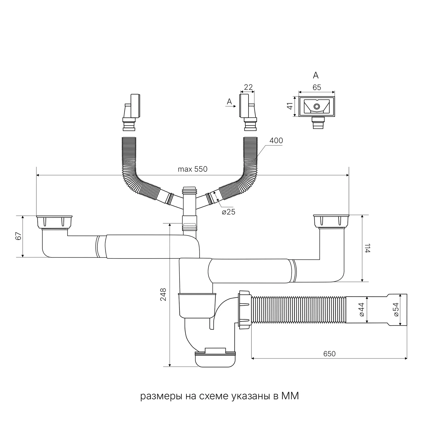 Комплектация: сифон, слив, перелив