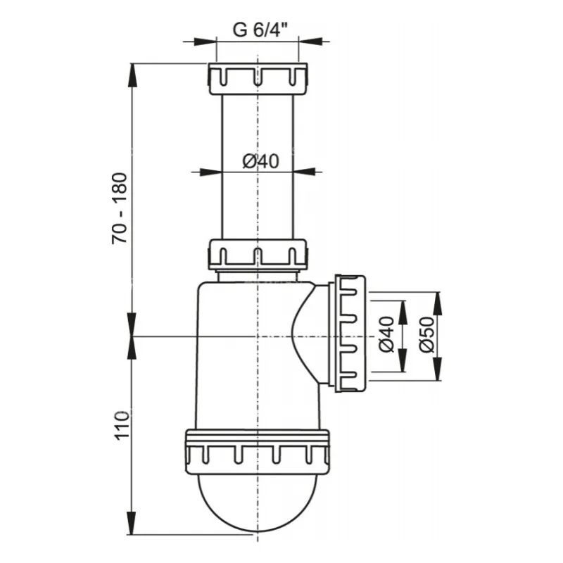 Сифон для мойки AlcaPlast c накидной гайкой 6/4" и подводкой A443P-DN50/40 купить