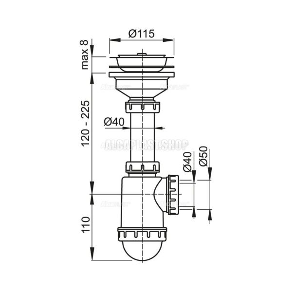 Сифон для мойки AlcaPlast с нержавеющей решеткой ?115 без штуцера A446-DN50/40 купить