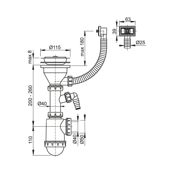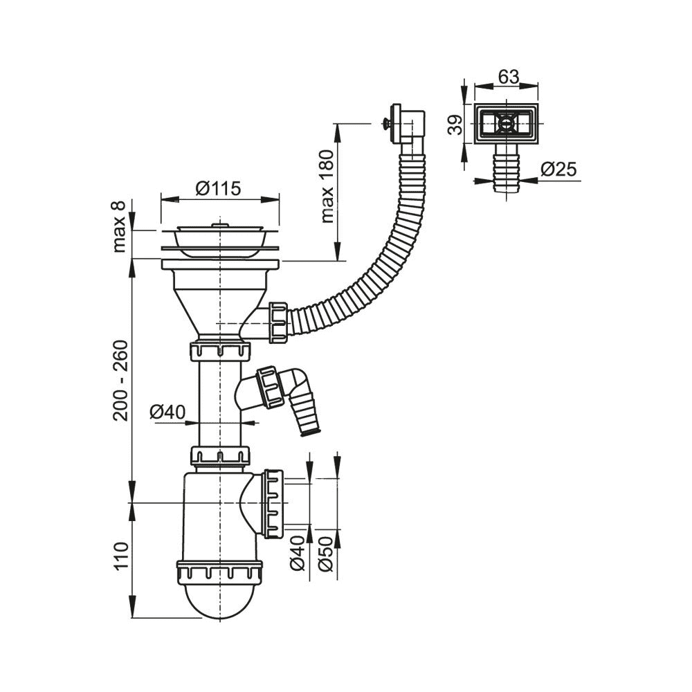 Сифон для мойки AlcaPlast с нержавеющей решеткой ?115 гофропереливом и подводкой A447P-DN50/40 купить