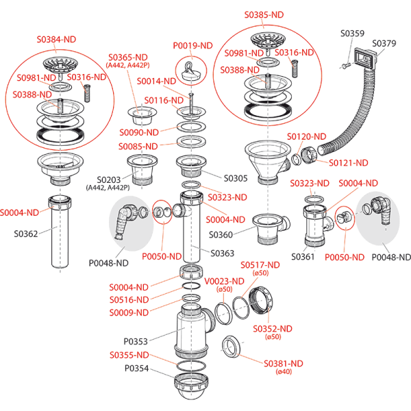 - Возможность подключения сливной трубы Ø50 мм или Ø40 мм