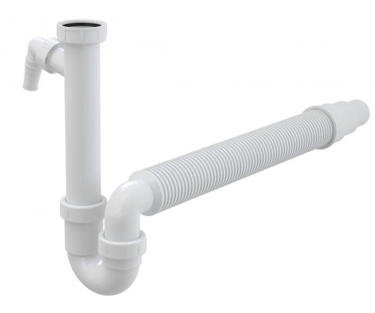 Сифон для мойки AlcaPlast трубчатый с накидной гайкой 6/4" подводкой и гофрой A83-DN50/40 купить