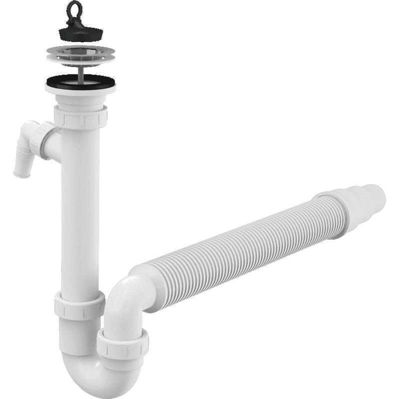 Сифон для мойки AlcaPlast трубчатый с нержавеющей решеткой ?70 гофрой и подводкой A830-DN50/40 купить
