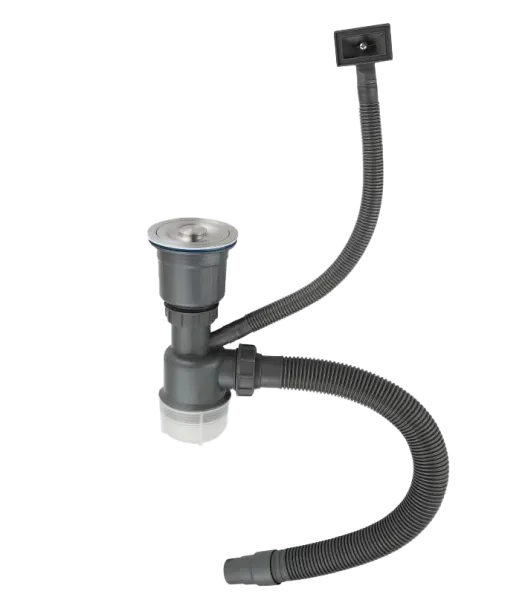 GF-01 нерж Сифон одинарный для мойки из нерж. стали, с переливом и корзинкой для мусора