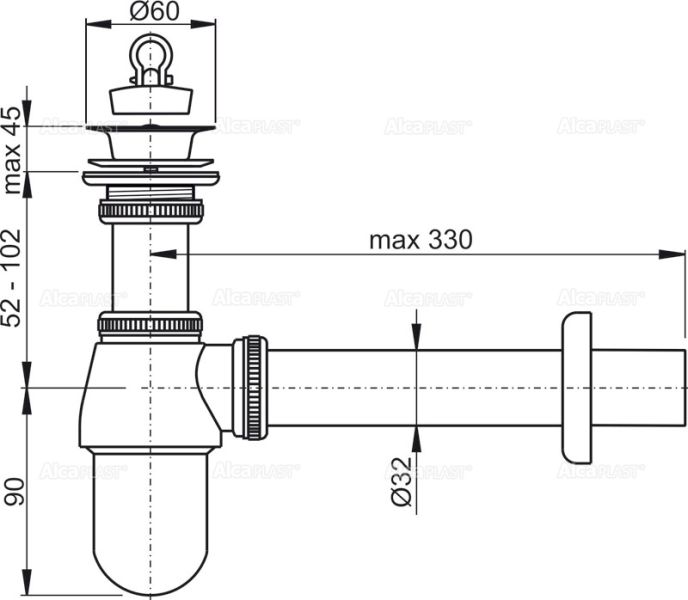 Сифон для раковины AlcaPlast 1 1/4"х32 цельнометаллический с водосливом 5/4" A437 купить
