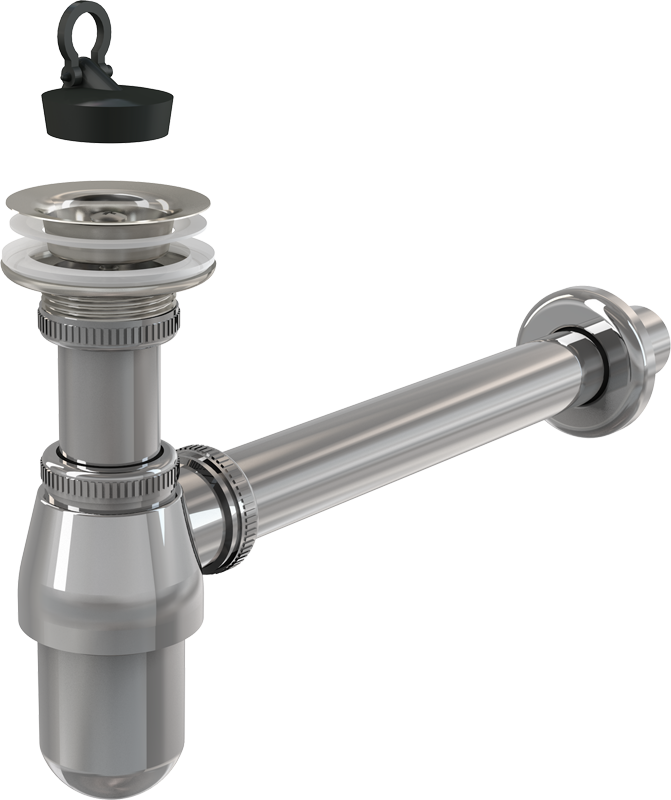 - Комплект цельнометаллического сифона и сливного клапана раковины