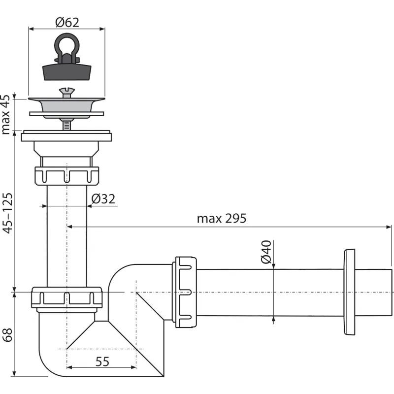 Сифон для раковины AlcaPlast ?40 с нержавеющей решеткой ?63 A412-DN40 купить