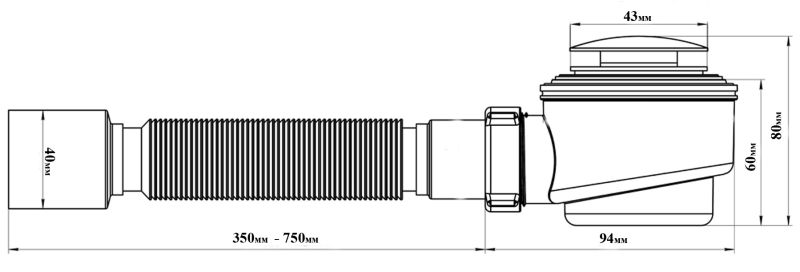 Сифон для высокого поддона Royal Bath с гофрой Sifon-knopka+gofra купить