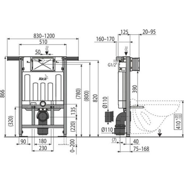 - Для установки подвесного унитаза с интервалом крепления 180 мм или 230 мм