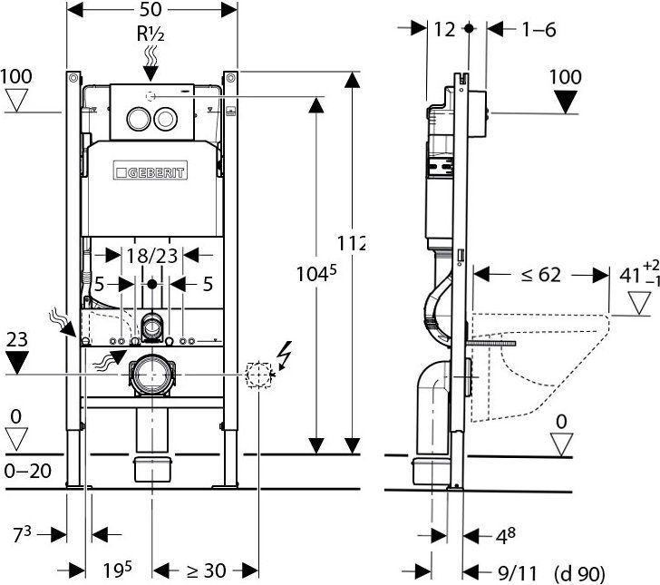 Система инсталляции для унитазов Geberit Duofix Delta 458.149.21.1 с кнопкой смыва, хромКрепится в капитальную стену и пол