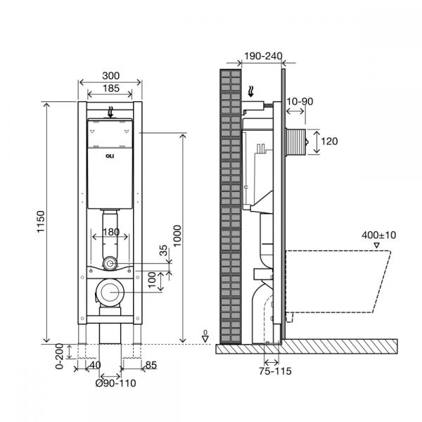 - Совместима с моделями подвесных унитазов с расстоянием между креплениями 180мм