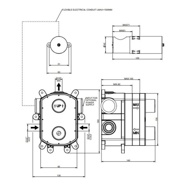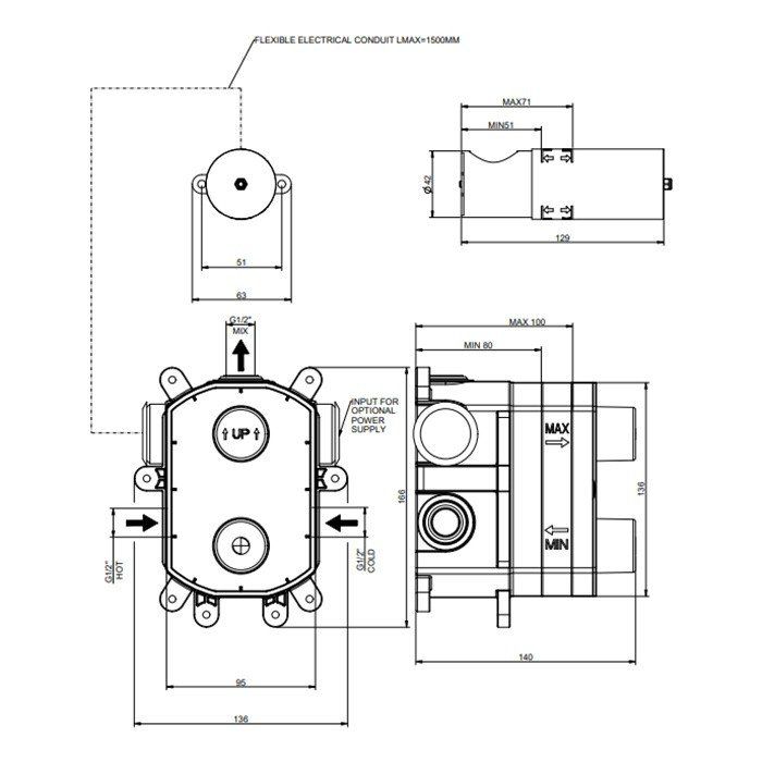Gessi Built-in part скрытая часть для электронного смесителя, удаленного управления. Глубинаскрытогомонтажа: минимум80мм, максимум100мм. Цвет хром.