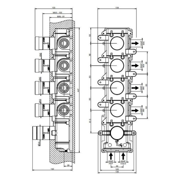 Скрытая часть для термостатического смесителя с четырьмя независимыми позициями Gessi Universale 09268.031 Скрытая часть для термостатического смесителя с четырьмя независимыми позициями Gessi Universale 09268.031 Казань 74858.00 {old_price} GESSI
