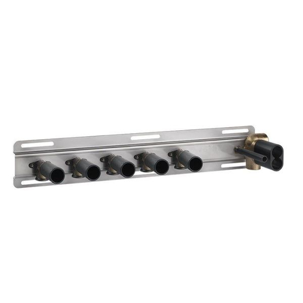 Термостат Gessi HI-FI с полочкой, встраиваемый, до 5 функций одновременно, в цвете Chrome, является высококачественным и стильным решением для современного санузла. Этот термостат позволяет одновременно управлять несколькими источниками воды, что дает пользователю полный контроль над системой душа или ванны, включая такие функции, как основной душ, ручной душ, боковые распылители и другие. Способность контролировать до пяти функций одновременно делает его идеальным для продвинутых душевых систем.