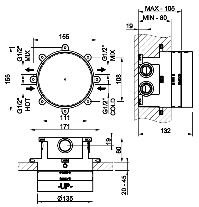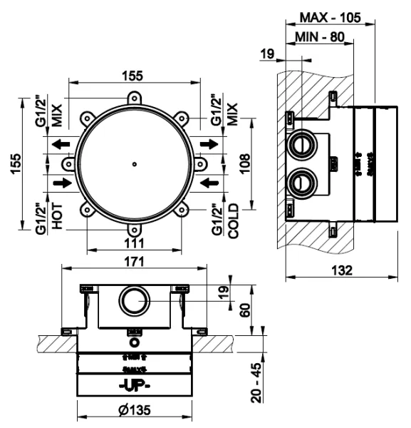 Соединение 1/2" делает эту скрытую часть универсальным решением для установки, совместимым с большинством существующих трубопроводных систем. Это обеспечивает легкость монтажа и минимизирует необходимость в дополнительных адаптациях. Kачество материалов и точная инженерия Gessi HI-FI Comfort гарантируют долговечность и надежность работы, что делает этот термостатический смеситель идеальным выбором для создания комфортной и стильной ванной комнаты на долгие годы.