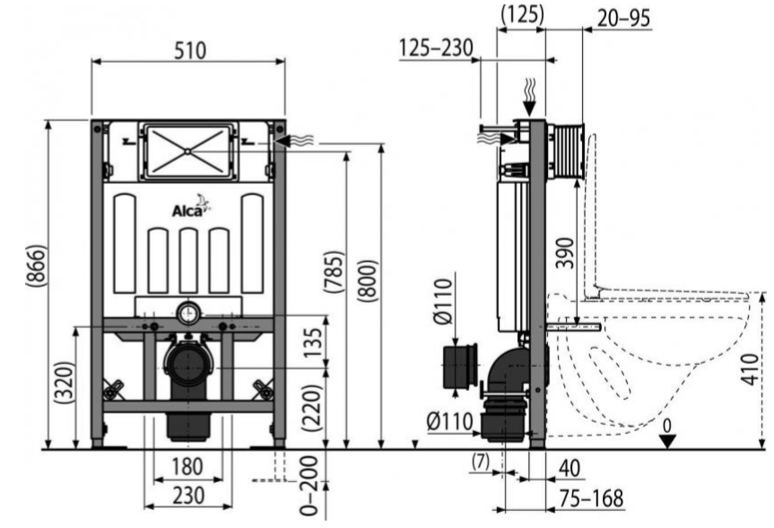 - Для установки подвесного унитаза с интервалом крепления 180 мм или 230 мм