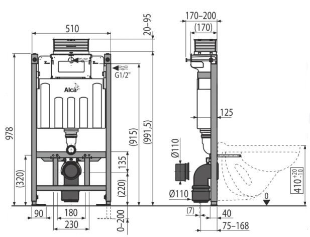 - Для установки подвесного унитаза с интервалом крепления 180 мм или 230 мм